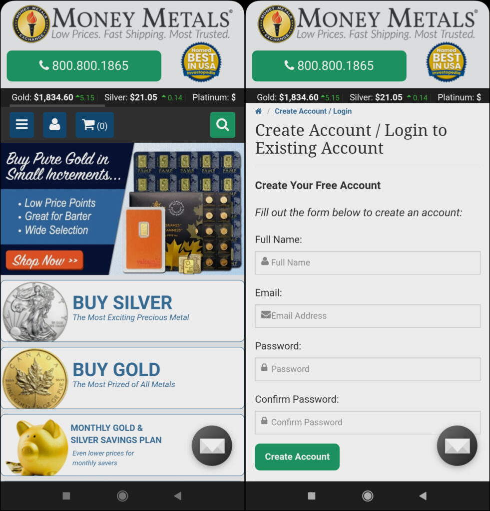 誰でもMoneyMetalsアカウントを登録して作成できます。 特別な要件や長いレビューはありません。 必要なのはあなたの名前と有効なメールアドレスだけです。