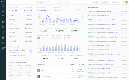 Putlerは、マルチチャネルのビジネス分析ソフトウェアです。 複数のウェブサイト、支払いゲートウェイ、ショッピングカート、Googleアナリティクスアカウントのデータを1か所に集約します。