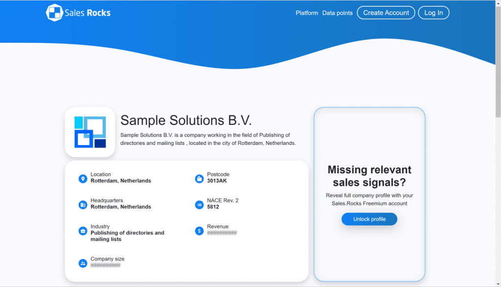 Sales.Rocks の会社プロファイルからの財務および収益情報
