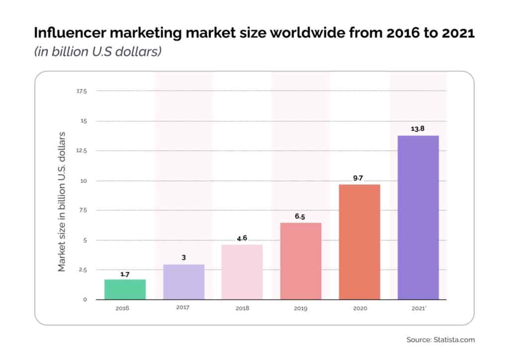 そのためにクリエーターエコノミーに感謝することができます。 世界のインフルエンサーマーケティングの市場規模は2019年以来2倍以上になっています。そうです、あなたはその権利を読んでいます。 Statistaによると、市場は2021年に記録的な138億ドルと評価され、その増加は単純です。 購入者は、他の購入者、または少なくとも対象分野の専門家(SME)であると主張する人々を信頼します。