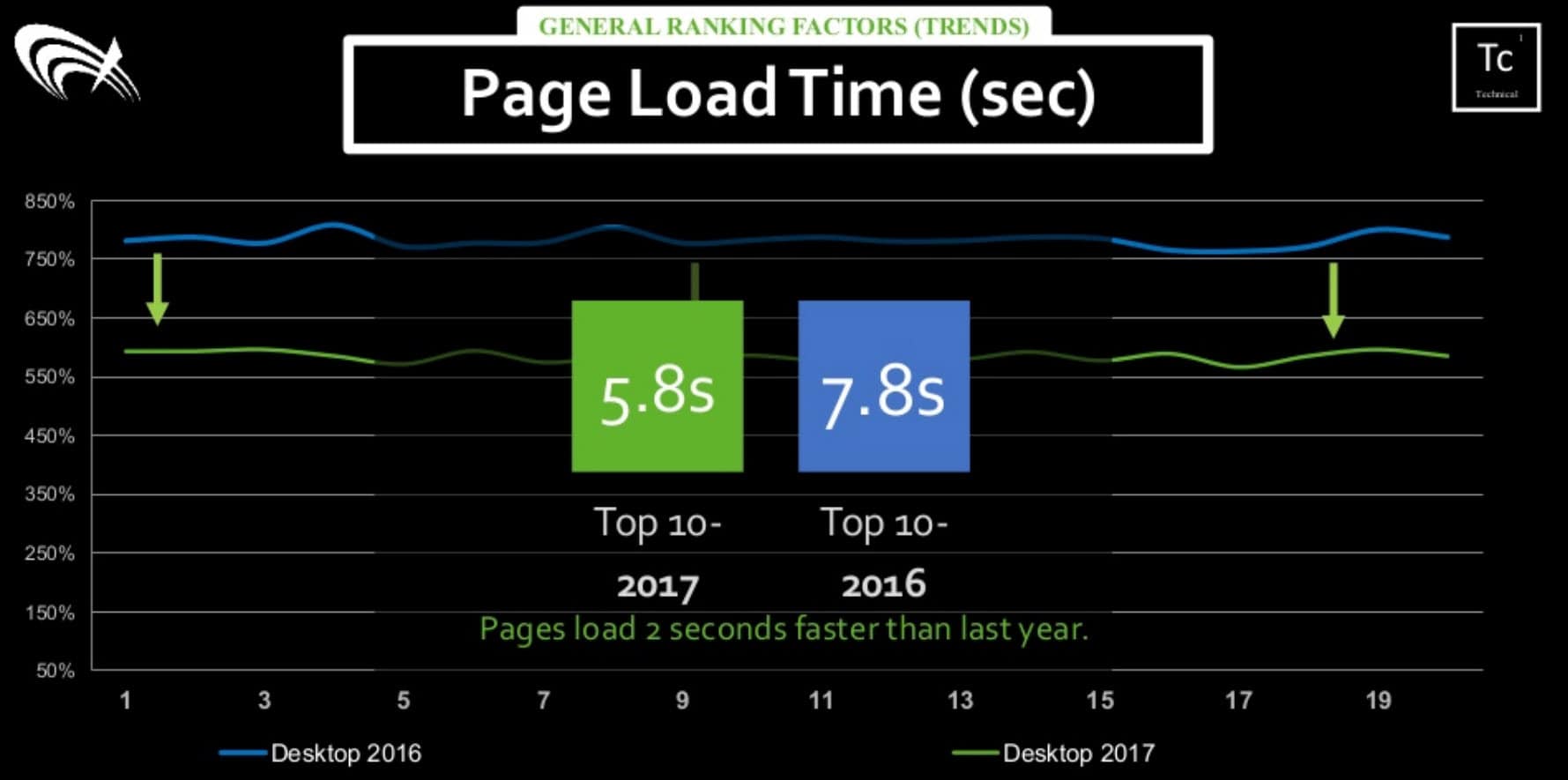 - Googleのトップ10の結果の平均ページ読み込み速度は速くなっています– 2017年と2016年では2秒速くなっています。