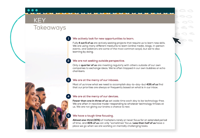 業界レポートには、それらを公開しているブランドが取得した元のデータが含まれています。 MarketingProfsは、他の誰も話していないトピックについての事実を見つけることによって、それを次のレベルに引き上げました。それは、マーケターの幸福です。