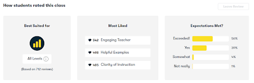 コースを選択するときは、学生の評価とレビューに特に注意を払う必要があります。 スキルシェアのメンバーは、クラスが初心者、経験豊富な人々、またはすべてのレベルの人々に適しているかどうかについて意見を述べることができます。 クラスについて最も気に入った点を示すことができます。 また、4段階でクラスを評価できます。