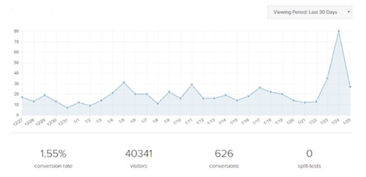 キャンペーンを実行すると、訪問者数、コンバージョン、コンバージョン率などの指標を通じてパフォーマンスを追跡できます。 さらに、分割テスト機能を使用すると、フォームの2つのバリエーションをテストして、最高のパフォーマンスを確認できます。