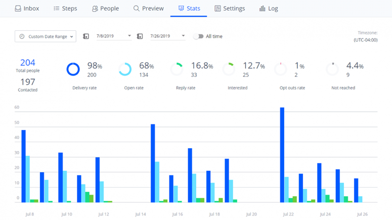 さらに、連絡先を管理して、アウトリーチが組織化されていることを確認できます。 このツールを使用すると、さまざまなタスクでチームメンバーと共同作業することもできます。 最後に、返信によって提供される詳細な分析で進捗状況を追跡できます。