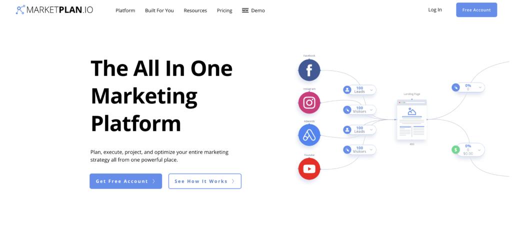 - MarketPlan は、目標到達プロセスのすべての部分をマッピングし、キャンペーンが開始された後にリアルタイムの数字を追跡できる、真にオールインワンの計画、マッピング、および追跡ソリューションです。