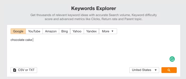 方法 #2。 キーワード エクスプローラーにシード タームをプラグインし、Google を検索エンジンのままにします。