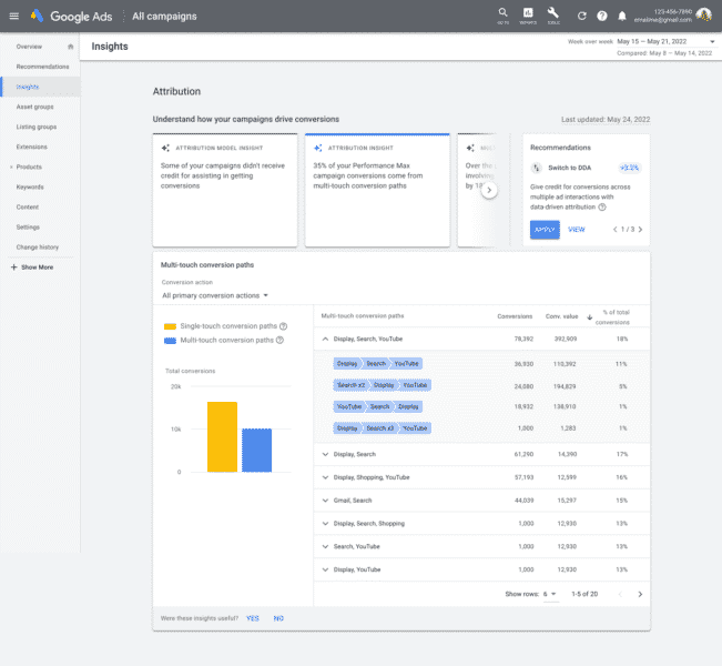 これはまた、Googleがコンバージョンに関するより良いビューを提供できることを検出した場合、より良いアトリビューションモデルを推奨します。