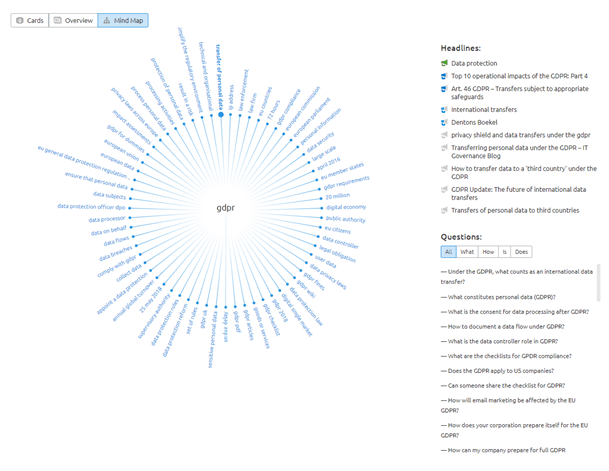 데이터는 깔끔하게 정리된 카드나 직관적인 마인드맵 형태로 제시됩니다.