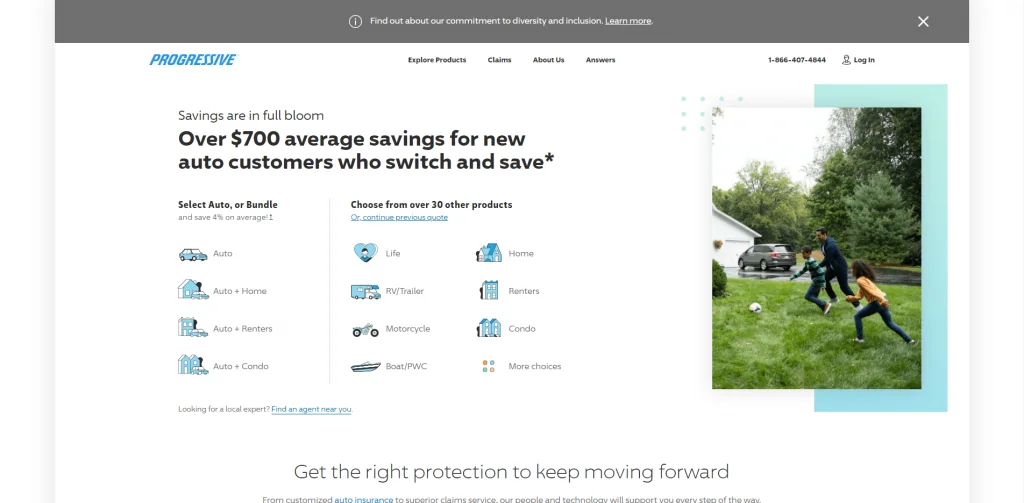 Progressive의 웹사이트는 많은 여백과 더 작은 글꼴로 매우 간단합니다. 즉시 그들은 다른 보험 회사에서 눈에 띄는 데 도움이되는 몇 가지 사실을 보여줍니다. 잠재 고객이 보험에 가입하려는 제품을 선택한 다음 몇 가지 질문을 작성하여 견적을 받을 수 있도록 함으로써 견적을 빠르고 쉽게 받을 수 있습니다. 이를 통해 잠재 고객이 지불해야 할 금액을 쉽게 확인할 수 있습니다.