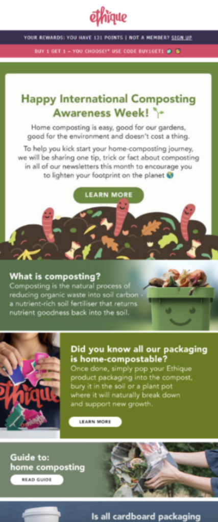 그러나 그들은 거기서 멈추지 않습니다. 이 뉴스레터 캠페인은 가입자가 자신의 가정에서 퇴비화에 대한 지식과 사용을 확장하도록 권장하는 데 사용됩니다.
