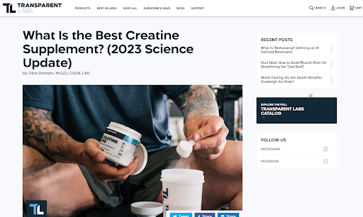 그들의 "최고의 크레아틴 보충제는 무엇입니까?" 게시물은 허공에서 주장을 끌어내는 것이 아닙니다. 대신 입증된 사실을 입증합니다. 의료 전문가가 작성하고 과학적 표기법을 뿌린 콘텐츠를 통해 그들은 정직하게 교육하면서 브랜드와 제품을 홍보하고 있습니다.
