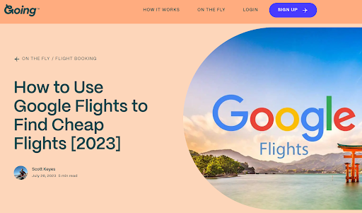 Going here을 살펴보겠습니다. 저렴한 항공편 및 거래를 위한 이 플랫폼에는 "Google 항공편을 사용하여 저렴한 항공편을 찾는 방법"이라는 가이드가 있습니다. 게시물은 단기적인 개요가 아니라 철저한 지침에 대한 마스터 클래스입니다.