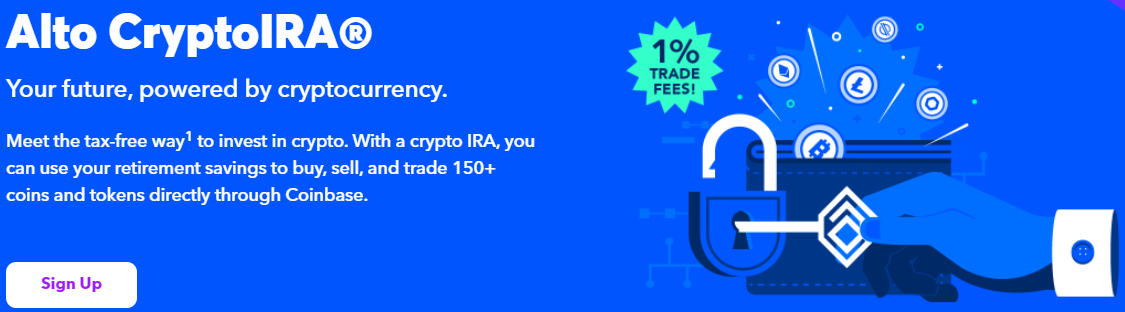 Alto의 CryptoIRA는 Coinbase를 통해 150개 이상의 암호 화폐에 투자할 수 있습니다. 이 암호화폐 IRA의 가장 좋은 점은 1%의 거래 수수료를 추적할 수 있는 단 한 가지만 포함하는 단순한 가격 구조입니다.