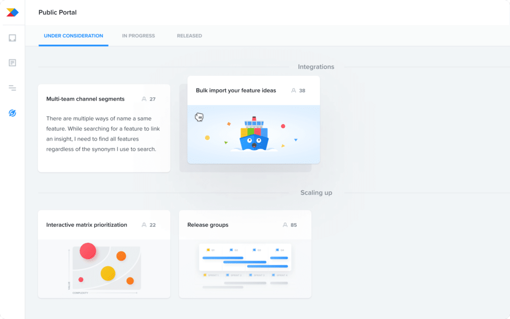고객은 의견을 남기고 제안을 제출하고 로드맵에서 현재 진행 중인 작업에 대해 알아보고 제품에 대한 최신 업데이트를 볼 수 있습니다. 비 기술 사용자가 사용하는 것은 정말 간단합니다.