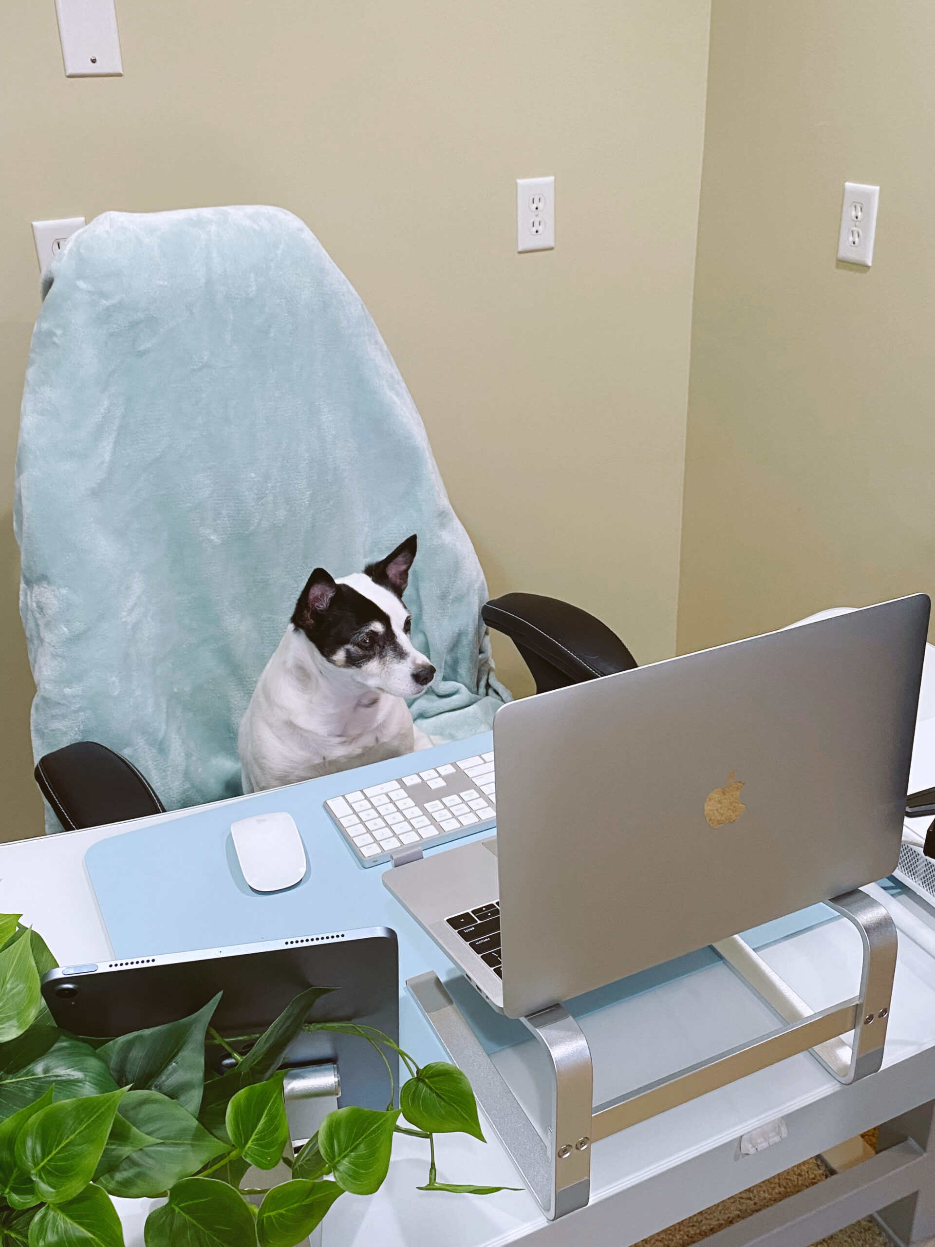 Mary Vaughan은 털 많은 친구와 사무실 공간을 공유합니다. 그녀는 그녀에게 집에서 일하는 것은 "매일 아침 커피를 끓이거나, 내가 할 일 목록을 작성하는 동안 내가 좋아하는 팟캐스트를 듣거나, 오후에 나와 함께 최신 프로젝트를 하며 보내는 것과 같은 작은 일에 감사하는 것"이라고 말합니다. 내 발 아래에 있는 강아지 — 이 모든 것이 생산성 향상과 전반적인 웰빙에 크게 기여했습니다.”