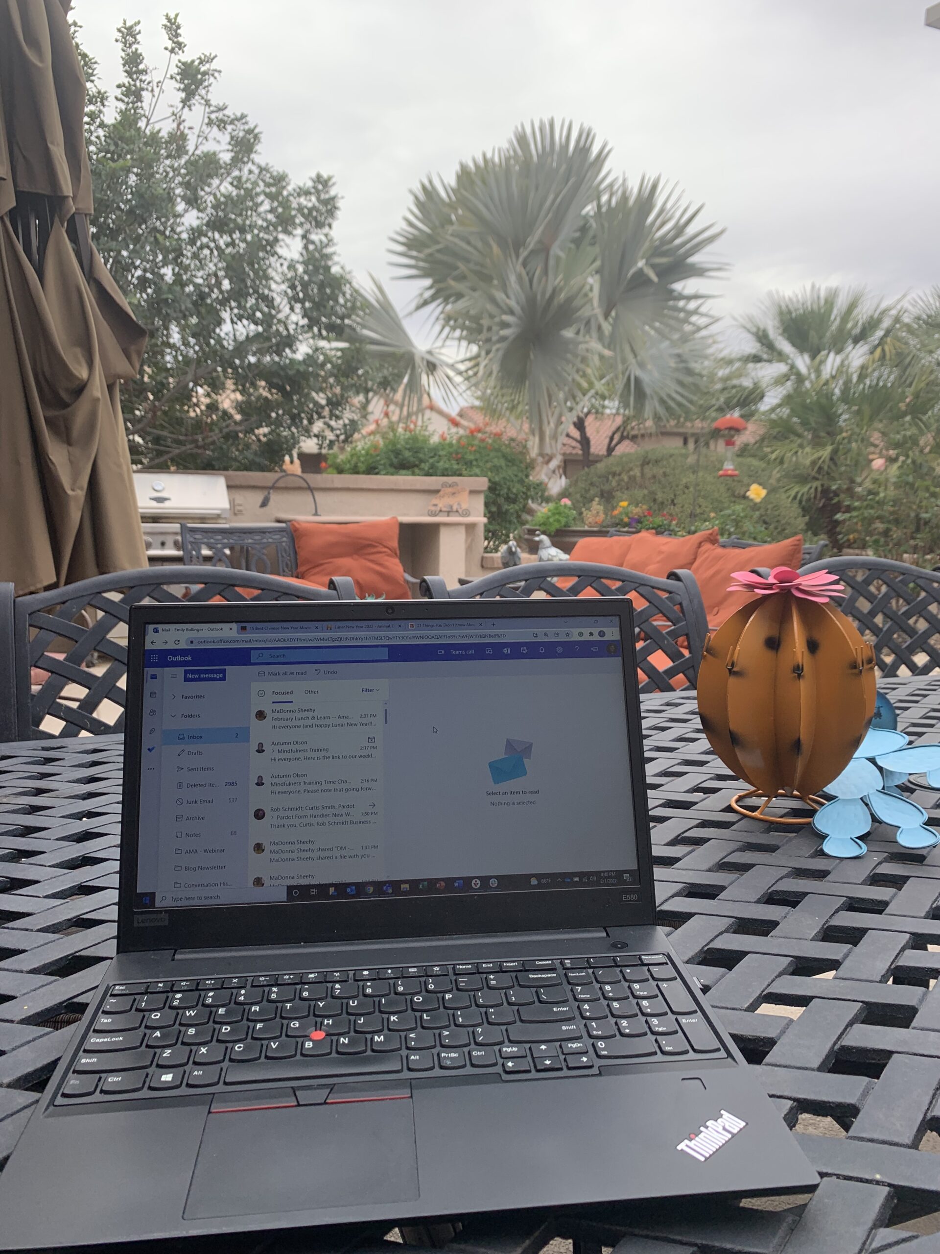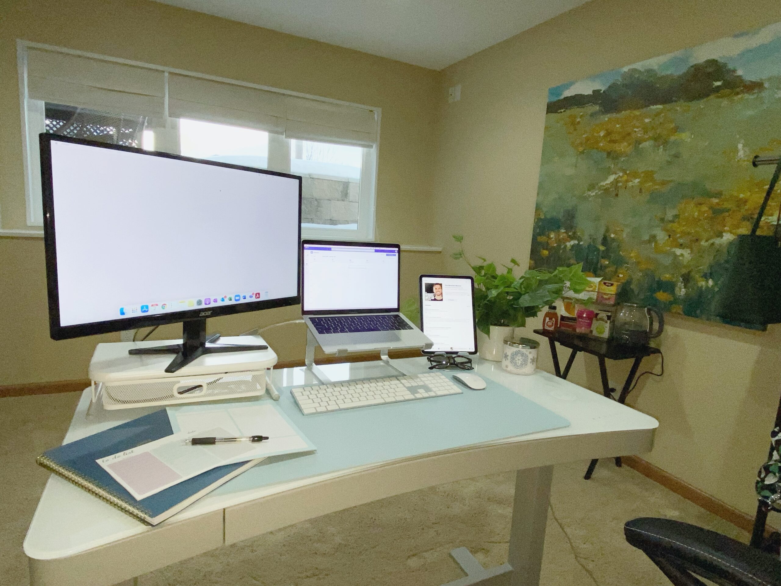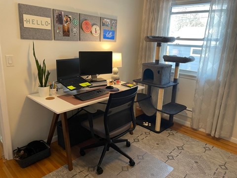 Kristi Marquardt는 오랫동안 재택근무를 했으며 사무실 상황을 확실히 파악했습니다. “저는 집에 몇 개의 작업 공간을 마련했고 이를 매우 조용하고 생산적으로 만드는 것을 즐깁니다. 나는 새들에게 먹이를 주고 대부분의 아침 햇살이 비치는 창가에서 일하는 것을 좋아합니다. 우리는 두 개의 사무실을 교체하여 사용하고 있는데, 이는 스트리밍 클라이언트 비디오 및 통화 속도의 좋은 변화입니다. 같이 있을 때 점심 같은 소소한 것들을 즐기려고 노력하고 쿠키를 쿠키 항아리에 보관합니다.”