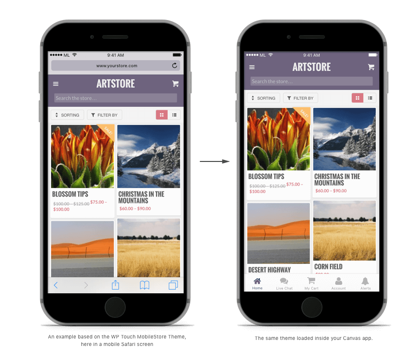 웹 앱을 Canvas로 래핑하면 고통스러운 노동이나 불확실성이 없습니다. 현재 사이트에서 사용하는 모든 것이 iOS 및 Android 버전 내에서 즉시 작동한다는 것을 알고 있습니다.