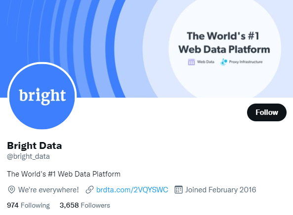 이 인기 있는 웹 데이터 플랫폼인 Bright Data는 사용자 이름에 밑줄이 있어 @bright_data가 됩니다. 당신이 알아차렸듯이, 그들은 단 하나의 밑줄만 사용했고 너무 지나치지 않았습니다.