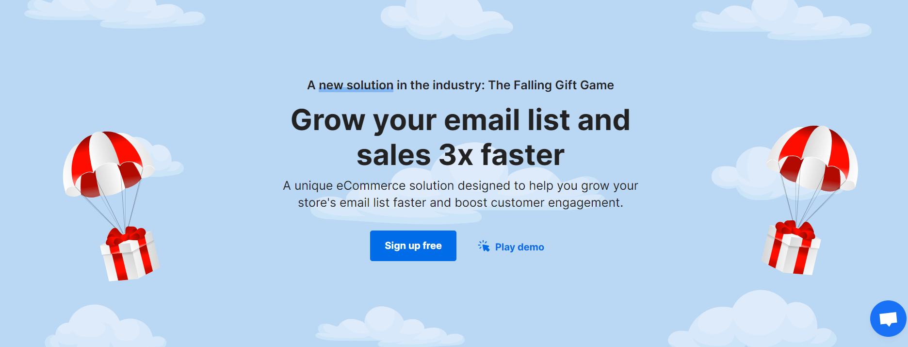 Adoric의 The Falling Gift Game은 독특하고 상호 작용이 뛰어난 게임화 전략입니다. Shopify 스토어 사용자가 떨어지는 선물 상자를 클릭하여 상품을 받을 수 있도록 하는 방식으로 작동합니다.