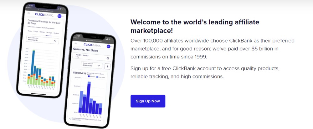 ClickBank는 고품질 제품에 대해 높은 수수료를 받는 선도적인 시장 중 하나입니다. 제휴 마케팅을 위해 수천 개의 소매업체에서 제공하는 4000개 이상의 고품질 제품을 제공합니다.