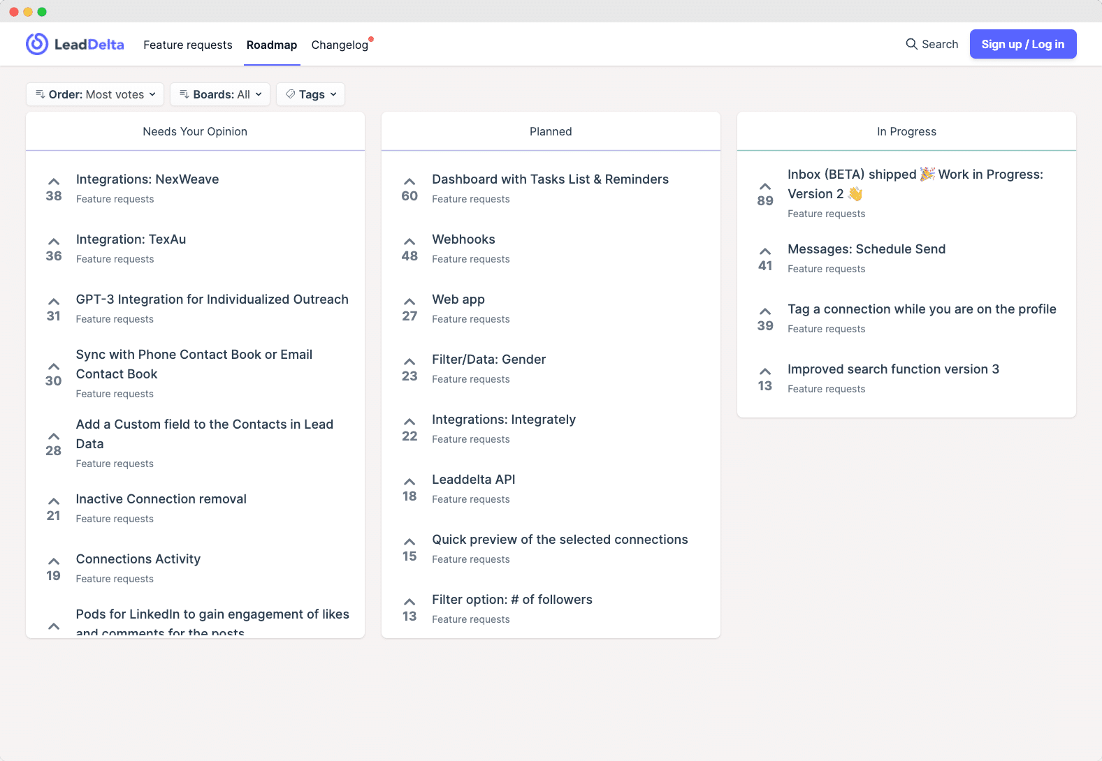 Trello와 같은 일부는 사용자 및 고객과 공유되는 기본 로드맵을 얻을 수 있지만 귀중한 사용자 입력을 얻고 양방향 대화로 만드는 가장 기본적인 기능조차 부족합니다.