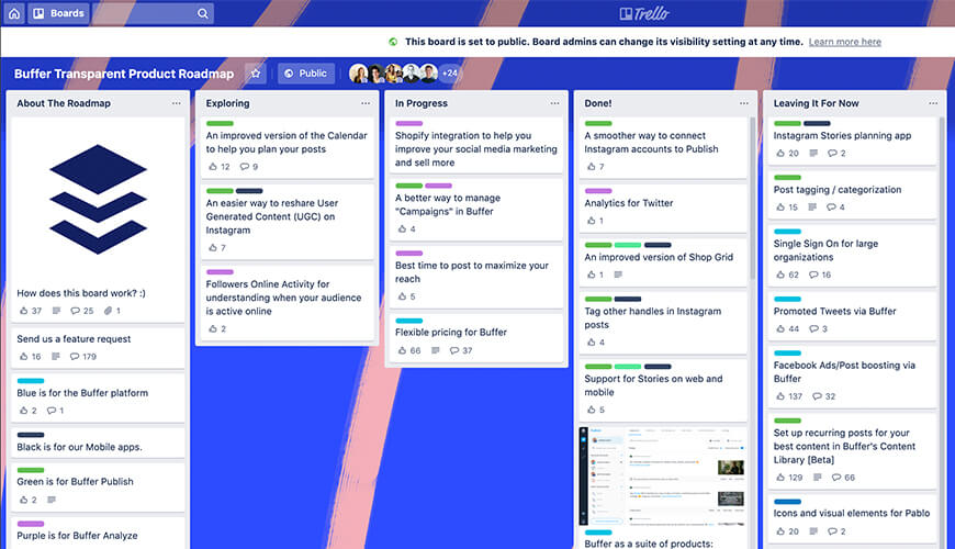 Trello의 문제는 사용자가 상호 작용할 수 있는 로드맵을 원할 때 발생합니다. Trello 보드를 완전히 열 수는 없습니다. 사용자들은 온갖 종류의 카드를 만들기 시작했고 그것은 혼돈으로 바뀔 것입니다.