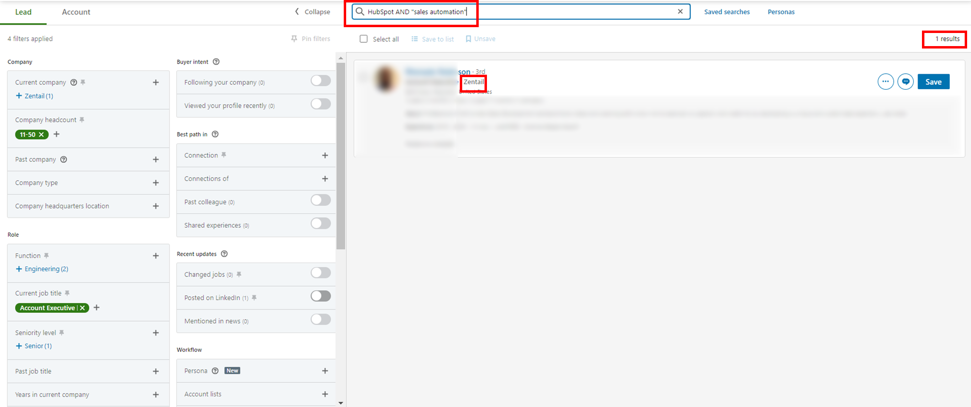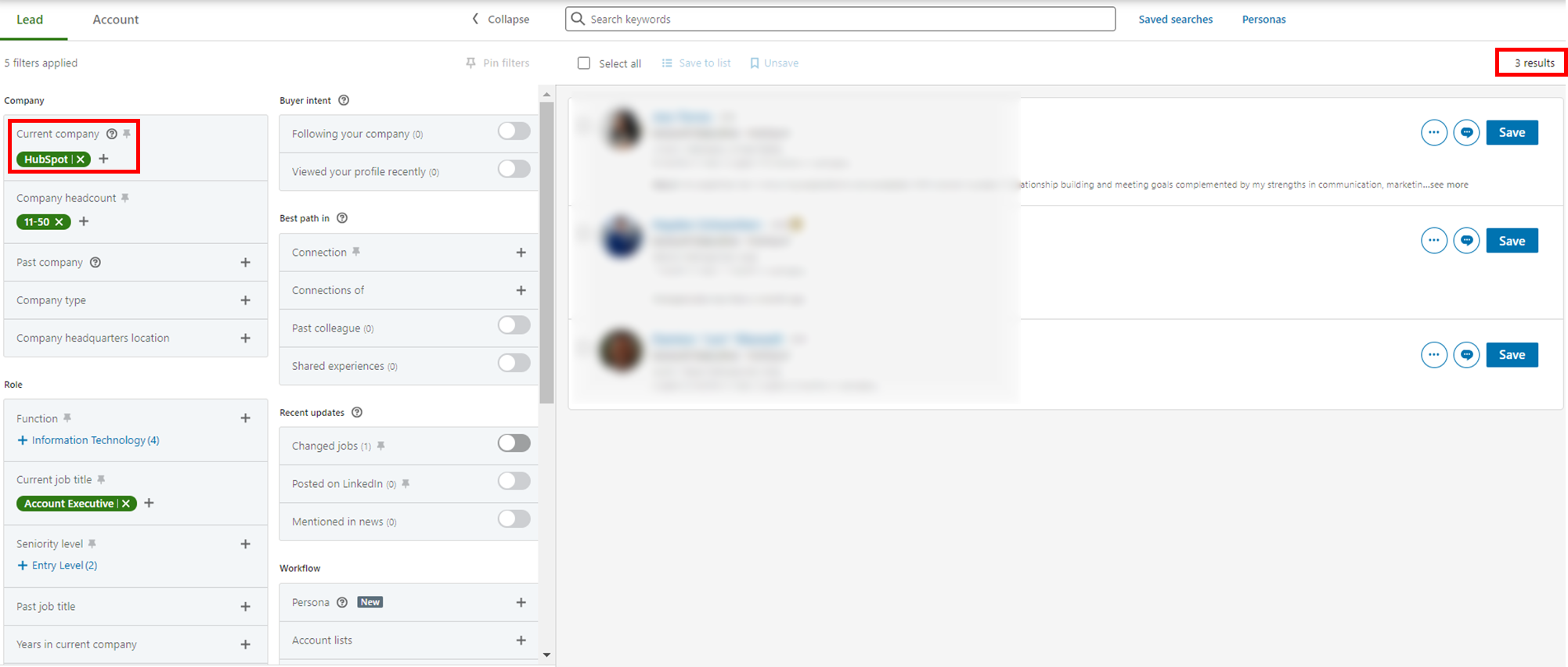 이것이 귀사에 적합한 영업사원을 찾는 첫 번째 방법입니다. 또는 귀하의 회사와 일치하는 회사를 기반으로 사람을 모집할 수 있습니다. 그런 다음 "현재 회사" 필드에 귀하의 업계에서 경쟁사 또는 주요 업체를 추가하기만 하면 됩니다.