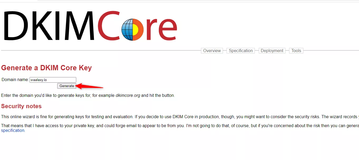 DKim은 귀하가 사용 중인 메일의 소유자 임을 식별하는 데 사용됩니다(적어도 웹에서 이에 대해 읽은 후 이해한 내용입니다). 먼저 식별자 역할을 할 고유 키 를 생성 해야 합니다. 이를 위해 이 사이트로 이동하십시오. 도메인에 대한 키를 생성합니다.