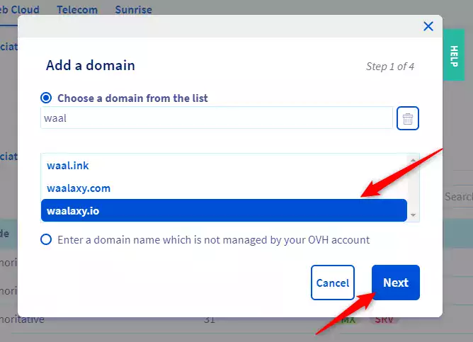 이를 피하기 위해 유사한 도메인 이름을 사용합니다. 제 경우 기본 도메인 이름은 Waalaxy.com입니다. 그래서 나는 waalaxy.io를 사러 갔다. 1년에 30유로가 듭니다. 따라서 이 단계를 소홀히 하지 마십시오.