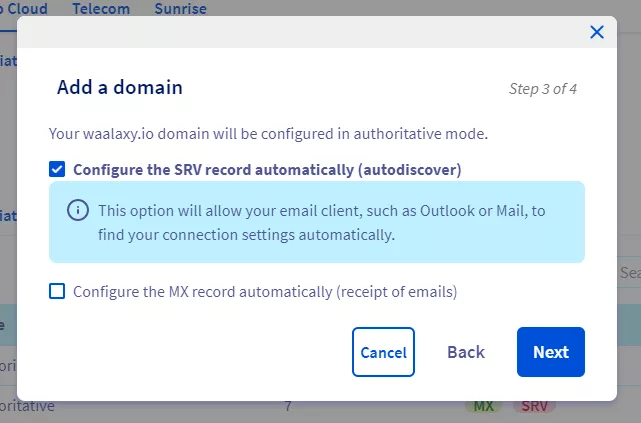 Waalaxy의 지원 채팅에서 귀하의 요구 사항을 직접 알려주십시오. 이러한 구성에 대한 완전한 문서를 만들기 위해 다시 한 번 시도할 것입니다. DNS 설정은 보낼 모든 이메일이 통과하는 것입니다.
