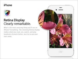 그래서 그들은 "우리 휴대폰에는 더 많은 픽셀이 있습니다"라고 말하는 대신 이 높은 픽셀 디스플레이를 "레티나 디스플레이"라고 명명했습니다.