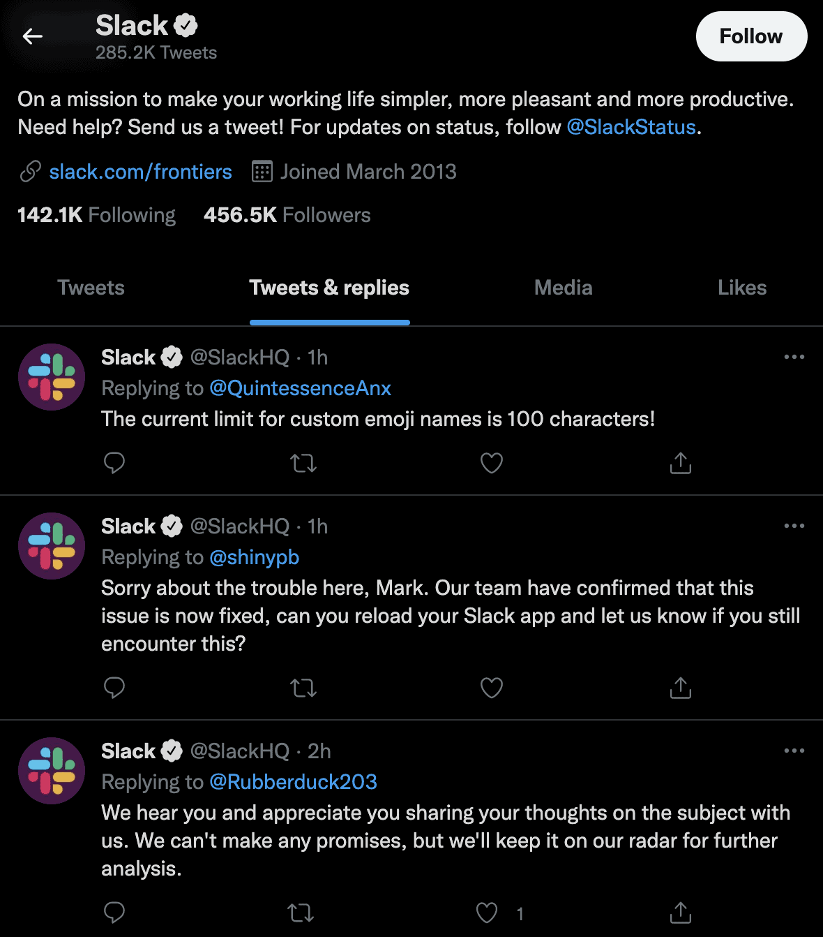 Slack이 Twitter를 사용하여 질문에 답변하고 고객 문제를 해결하며 원치 않는 피드백 에 응답하는 방법을 확인하세요 .
