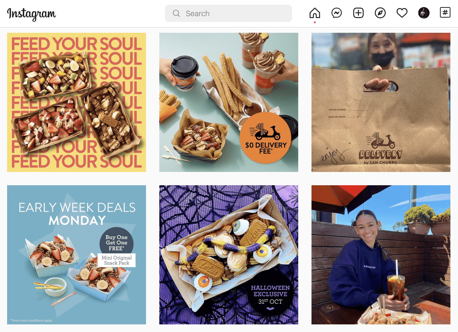 다음은 디저트 가게 San Churro의 위치 중 하나의 Instagram 페이지에서 가져온 예입니다.