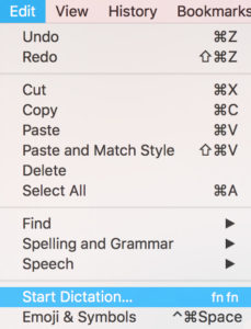 내가 사용하는 특정 도구는 Google 크롬의 편집 메뉴에서 찾을 수 있는 받아쓰기 옵션입니다( 참고: 저는 Mac을 사용 중입니다 ).