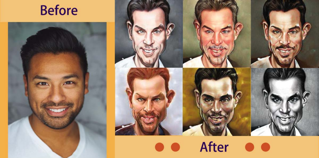 AI 캐리커처 제작자는 아티스트가 일반적으로 그리는 방식에 따라 기계가 캐리커처를 생성하는 도구와 기술을 사용하여 작업합니다. 예를 들어, 특정 시스템은 전문가가 만든 수백 또는 수천 개의 캐리커처를 사용하여 단일 사진을 기반으로 캐리커처를 생성합니다.