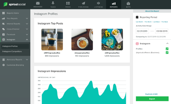 Sprout Social ma wbudowane narzędzia do głębokiej analizy, które ułatwiają zrozumienie danych społecznościowych i pozyskiwanie większej liczby obserwujących na Instagramie .