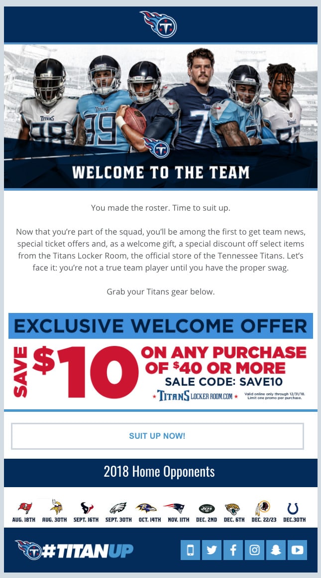 2. Zakończenie myśli DLACZEGO powinni działać. Wielu marketerów zbyt mocno korzysta z rabatów, aby zmusić subskrybentów do zakupu. Tutaj opiera się na emocjach: Jesteś częścią naszego zespołu, więc rozszerz tę relację, nosząc nasz sprzęt. Jest znacznie potężniejszy i bardziej zgodny z marką niż prosty komunikat „Kup teraz”.