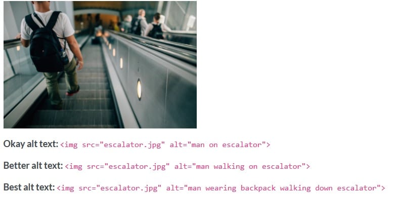 Poniższy obraz przedstawia kilka najlepszych praktyk, jeśli chodzi o pisanie tekstu znacznika alt.