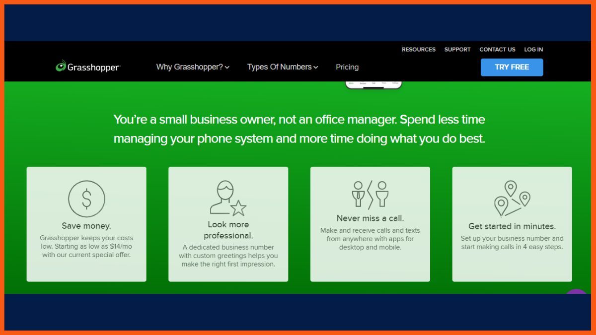 Możesz przypisać różne skrypty do różnych ścieżek klienta, aby bardziej profesjonalnie odbierać połączenia przychodzące. Za dodatkową opłatą oprogramowanie oferuje również profesjonalne studio głosowe. Oprogramowanie Grasshopper umożliwia przełączanie się między operatorami działającymi na żywo a cyfrowymi recepcjonistami w zależności od preferencji, dając ci elastyczność wyboru, kto obsługuje twoje połączenia. Grasshopper oferuje łatwy 4-etapowy proces dodawania numeru firmowego i integracji smartfona z wirtualnym systemem telefonicznym, dzięki czemu nigdy nie przegapisz połączenia i zaprezentujesz profesjonalny wizerunek swoim klientom.