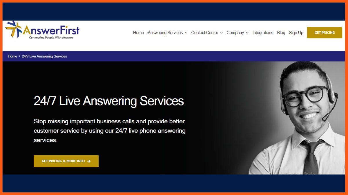 Oto niektóre z usług, które są dostępne po zarejestrowaniu się w Answer First: dyspozytornia 24/7, zarządzanie systemami i bezpieczeństwem, transfer na żywo, przyjmowanie wiadomości, planowanie i rezerwacje, wirtualna recepcjonistka i usługi poczty głosowej.
