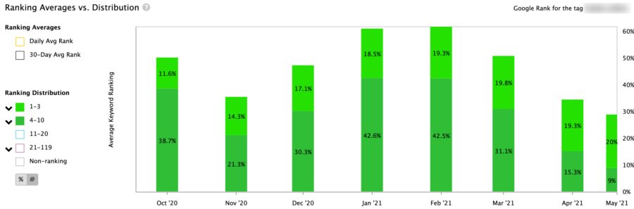 Pod względem rozwiązania do śledzenia rankingu STAT jest jednym z najlepszych na rynku. STAT nie ma sobie równych pod względem zbieranych danych rankingowych. STAT będzie codziennie śledzić Twoje słowa kluczowe, co daje dużo więcej informacji na temat trendów w rankingach w czasie. Dodatkowo możesz użyć segmentacji słów kluczowych, aby wyodrębnić swoje rankingi według różnych grup słów kluczowych.