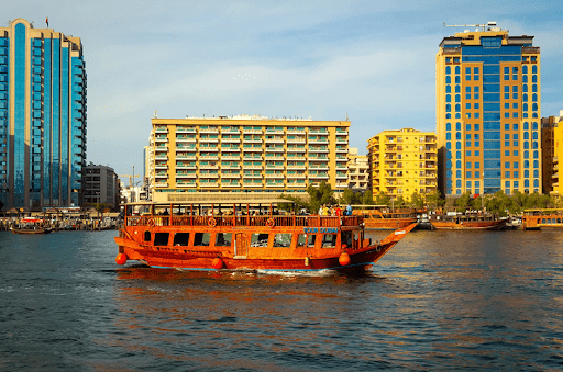 Delikatne kołysanie dau na spokojnych wodach tworzy kojącą atmosferę, a gościnność załogi dodaje autentyczności temu doświadczeniu. Ten urok, przesiąknięty historią i tradycją, tworzy niepowtarzalną i urzekającą atmosferę, która przygotowuje scenę dla niezapomnianej podróży po wodach Dubaju, oddając esencję minionej epoki.