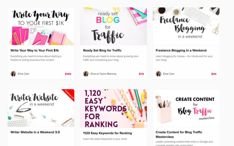 W moim sklepie mam pięć kursów dla niezależnych pisarzy i trzy książki elektroniczne.