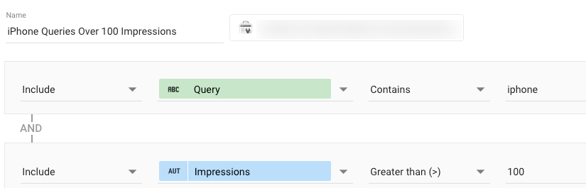 Załóżmy na przykład, że chciałem stworzyć więcej treści wokół iPhone'ów i zidentyfikować kilka łatwych do konkurowania o słowa kluczowe. Mógłbym stworzyć prosty filtr, który pokaże mi zapytania „iphone” powyżej 100 wyświetleń.