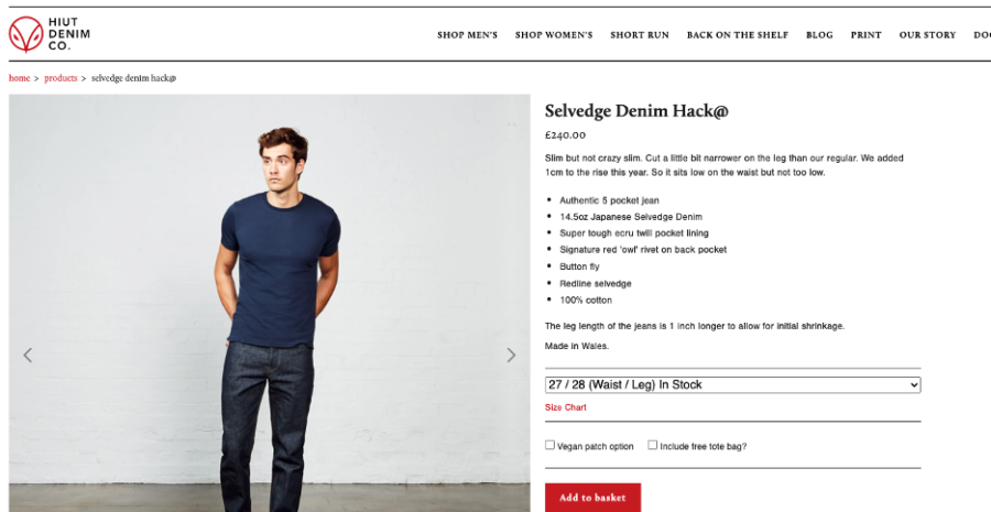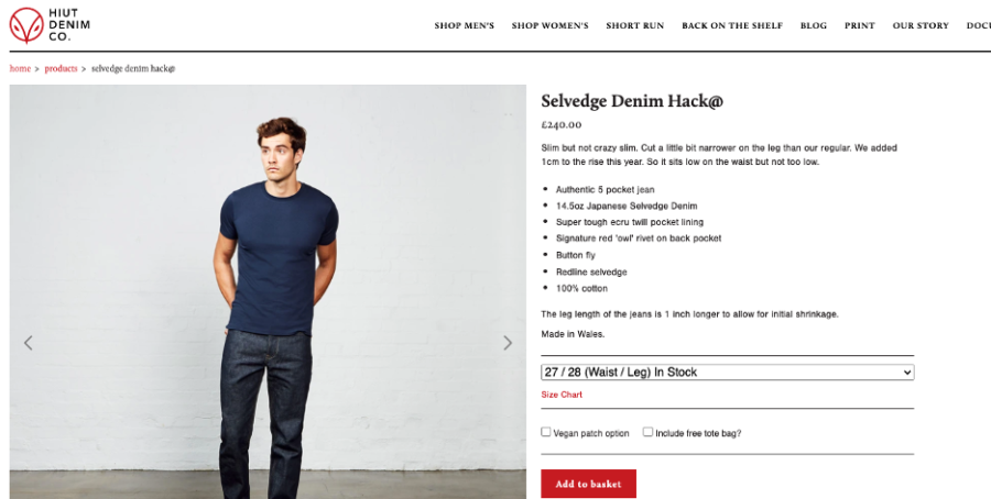 Po kliknięciu jednej z tych stron zostaniesz przeniesiony na stronę produktu z tekstem /collections/ & /products/ w ścieżce adresu URL. Format będzie wyglądał mniej więcej tak.