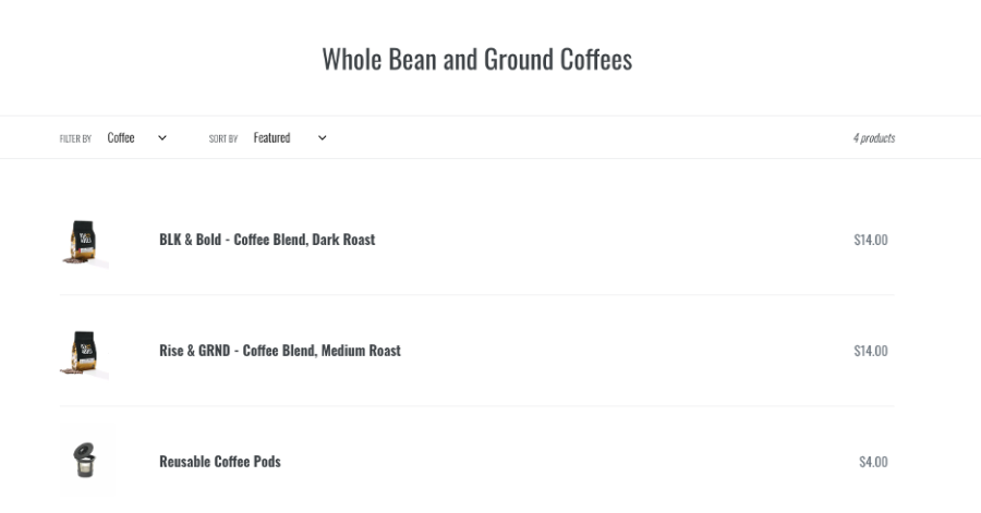 Na przykład poniżej możesz zobaczyć przykład dwóch bardzo podobnych stron. Pierwsza z nich to główna strona docelowa witryny dla „mielonej kawy”. Druga to zduplikowana strona utworzona przez tag „Kawa”, który witryna umieściła w tych produktach: