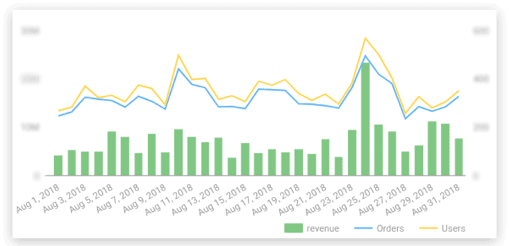 Za pomocą zapytań SQL zespół marketingowy połączył wszystkie dane zebrane w BigQuery w jedną tabelę. Teraz mogą wykorzystać te dane do tworzenia raportów w formacie przyjaznym dla firmy za pomocą narzędzia do wizualizacji danych Data Studio.