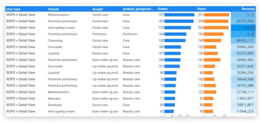 Na przykład pojawiła się hipoteza, że perfumy przynoszą największe przychody ROPO. Raport wykazał jednak, że w rzeczywistości kategoria produktów do pielęgnacji twarzy w serii produktów przeciwstarzeniowych ma duży udział w ROPO. Produkty te można rozważyć przy opracowywaniu kolejnej kampanii reklamowej online.