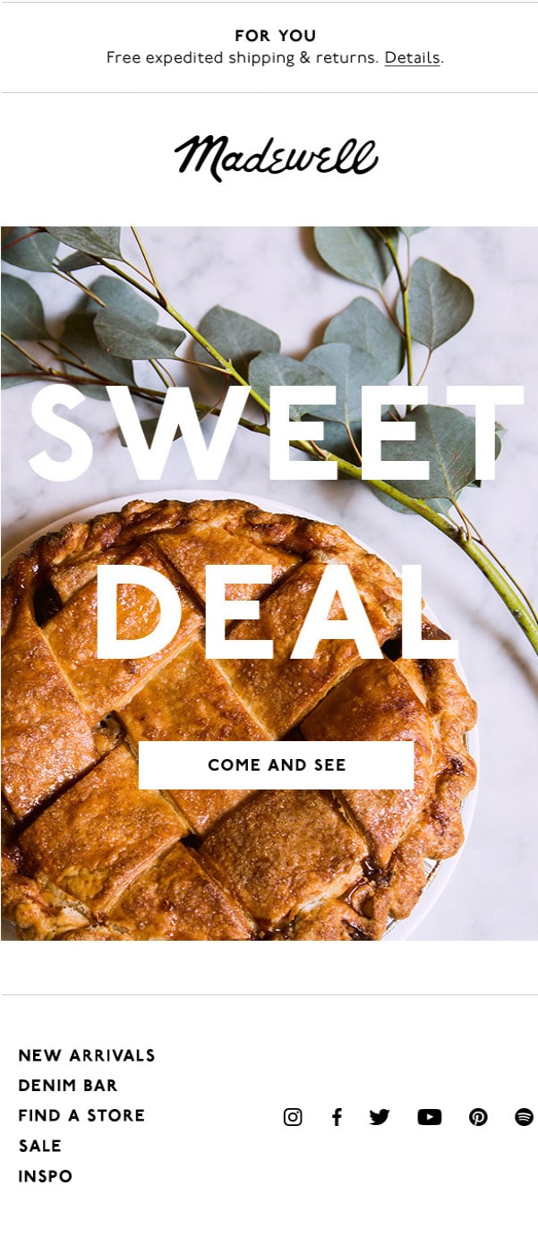 Madewell: „ Ta lista nie byłaby kompletna, gdybym nie wspomniała o moim numerze 1 we wszystkich rzeczach dżinsowych, brandingu i terapii detalicznej. Kiedy wysłali mi e-mail z tematem „Surpriiiiisee….”, wiedziałem, że nie będą Graj w gry moim sercem. I nie zawiedli – zdobyłem słodką zniżkę na moje ulubione dżinsy (pamiętali!), kiedy kliknąłem w link.”